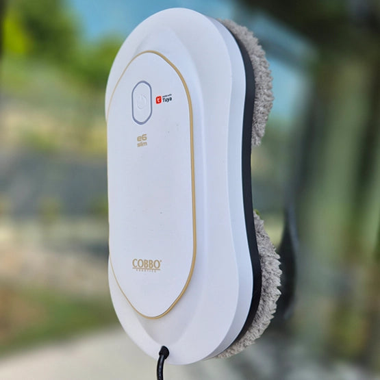 COBBO e6 slim je robotický čistič okien, ktorý funguje na širokej škále sklenených povrchov, obkladov a hladkých stien.